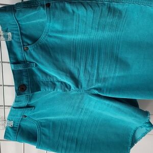 Stylish teal corduroy shorts with a button closure. Perfect for casual outings. waist is 18 with a 10 inch rise.