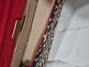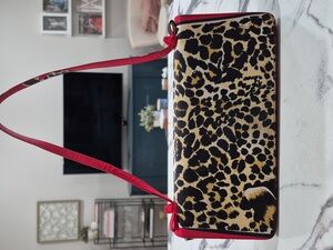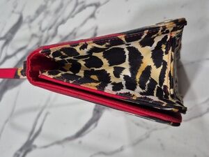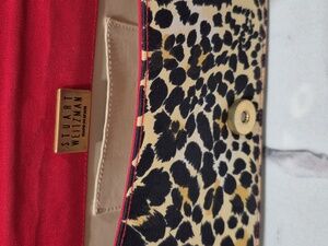 Stuart Weitzman Leopard Mini Bag, Tan & Black Animal Print w Red, Vintage
