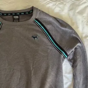 Victoria's Secret Gray Crewneck Sweater with Black and Blue Stripes