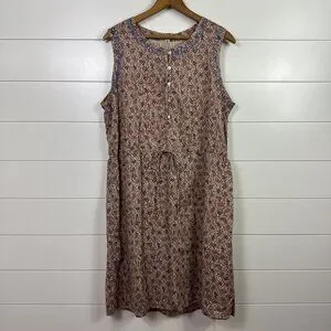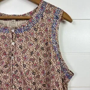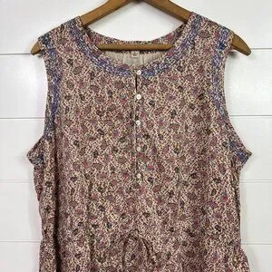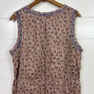 Lucky Brand Pink Floral Sleeveless Drawstring Midi Dress