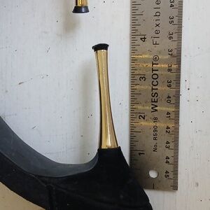 Features: Wide gold ankle cuff, a back zipper closure for easy wear, and a high stiletto heel.