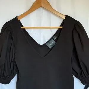 Maeve by Anthropologie black puff-sleeve black ribbed top MEDIUM