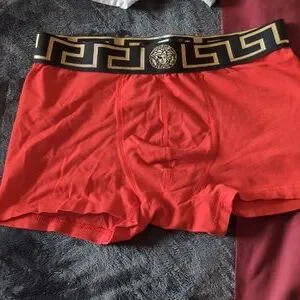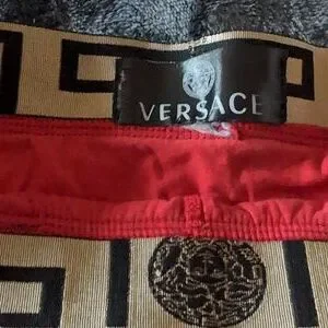 Stylish Versace boxer briefs in red and white. Features iconic logo waistband. With Box