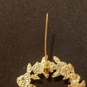 Gold-Tone Beautiful Pink Porcelain Rose Wreath Brooch. Measurement Displayed On Pic, Lightly Used. Pin Is Bent A Lil.
