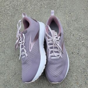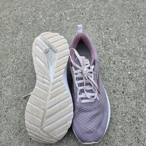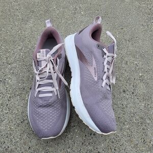 Gently used Brooks Revel sneaker. Good condition and quality. Has minor wears but in good shape. Stylish lavender sneakers by Brooks. Ideal for running and casual wear. Lightweight and breathable design. Women's size 11.