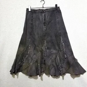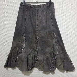 Embrace the retro hippie vibe with this elegant dark grey denim skirt featuring intricate lace details, perfect for adding a touch of sophistication to your wardrobe. Ideal for both casual and formal occasions.
