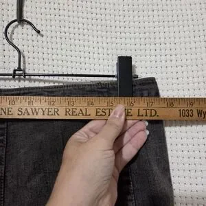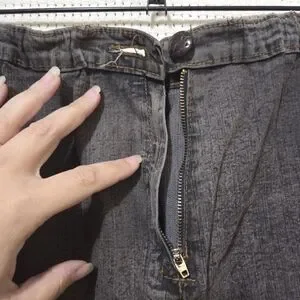 Boho Chic Handmade Dark Grey Distressed Denim Skirt with Lace Details L/XL