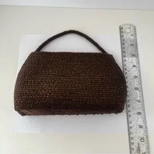 Evening Bag Brown Beaded Vintage Black Tie Prom Easter Bijoux Terner This elegant brown beaded handbag is perfect for any occasion. Its intricate design adds a touch of sophistication to your outfit.