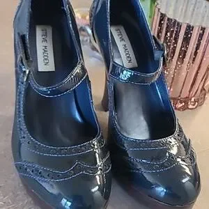 LIKE NEW! Steve Madden Size 8 Navy Patent Leather Oxford Heels. Mary Jane style. Gorgeous!