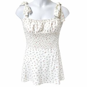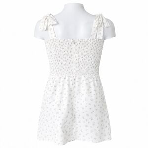 Keywords: floral mini dress, smocked sundress, self tie strap dress, white floral sundress, Bloomingdale’s dress, summer mini dress, resort wear dress, vacation dress, cottagecore dress, feminine floral dress, spring summer dress, boutique sundress