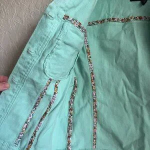 Keywords: Anthropologie style, Sanctuary jacket, mint green denim jacket, pastel denim jacket, spring jacket, lightweight jean jacket, women’s casual jacket, boho style jacket, cottagecore aesthetic, trendy layering piece, women’s outerwear.