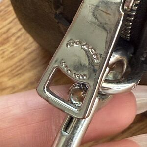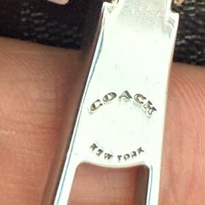 Structured signature satchel with dual top handles. Removable shoulder strap for versatility. Silver-tone hardware and Coach logo plaque. Classic, streamlined design for daily use.
