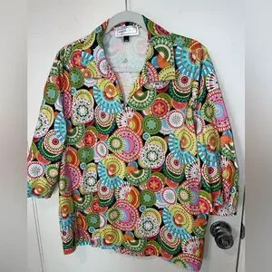 Coco Jase multicolor psychadelic blouse top shirt boho sz 3XL floral abstract bright smoke free