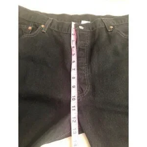 Levi's Men's 501 Black Denim Jeans Button Fly 42 x 32. Jeans are pre-owned in good condition. Please see all photos for visible condition. Rise is 12.5 inches. 100% cotton. From pet friendly home.
