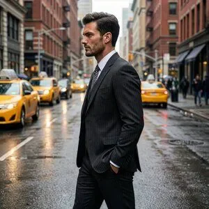New 2026 Mens 3pc Pinstripe Dark Grey Suit Set, Hybrid Fit