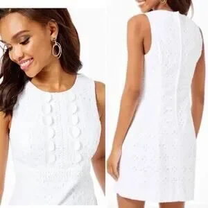 Lilly Pulitzer Railee Resort White Floral Cross Eyelet Shift Dress Size 0