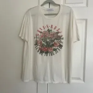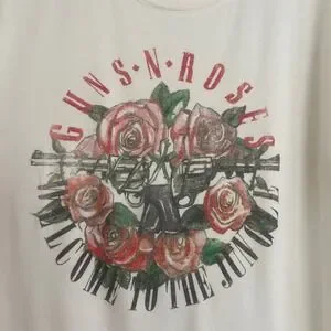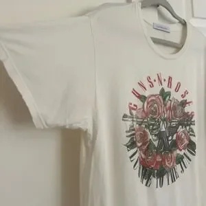 Keywords: Rocker, Grunge, Band Tee, Concert, 80s, Hard Rock, GNR, Streetwear, Casual, Edgy, Boho, Festival, Oversized, Soft, LA Style