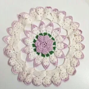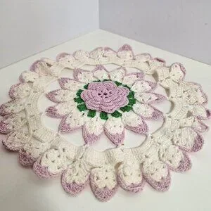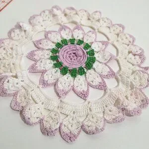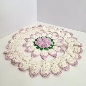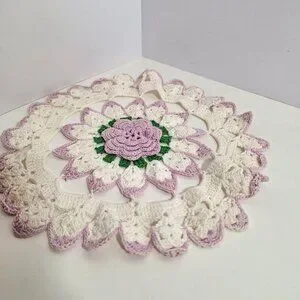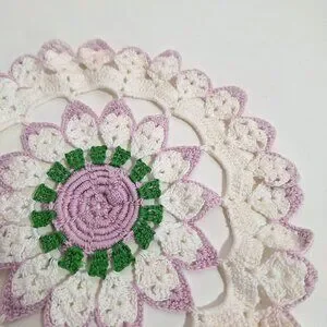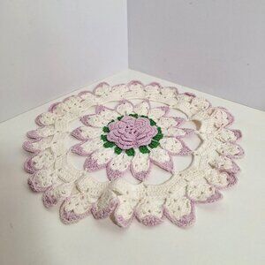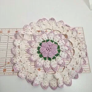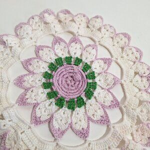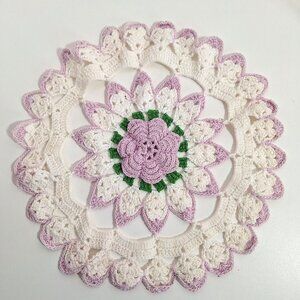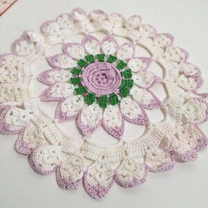 Hand Crocheted Lace Doily Flower Lavender White Green Purple Cotton 10 Inch