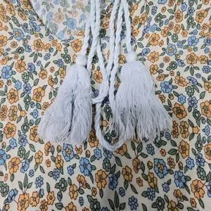 Design: Tunic-style silhouette with a V-neckline and adjustable tassel tie closure.