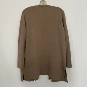 Quince Sweater Cardigan Womens Medium Brown Merino Wool Open Front Longline