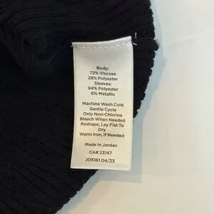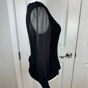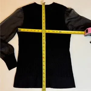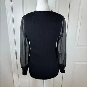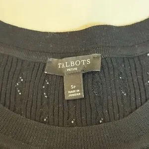 Talbots Petite Black Textured Knit Sweater Sheer Sleeves OfficeCore