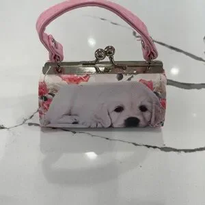 Tic Toc Pink Puppy Print Kiss lock Lipstick/Change Purse/Bag Charm No Callouts