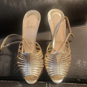 Christian Louboutin Metallic Gold Strappy Slingback Heels