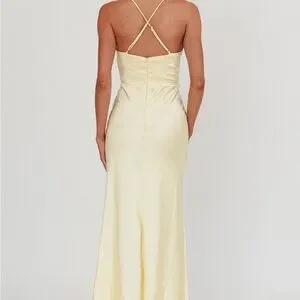 Stunning yellow gown with delicate lace trim. Perfect for formal occasions.