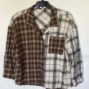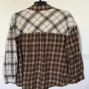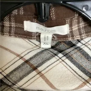 Maurices Two-Tone Brown & Cream Plaid Button-Up Flannel Shirt for women. Size XL
