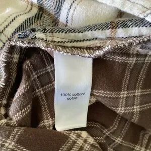 Casual flannel women’s plaid shirt in brown and cream from Maurices. Soft, breathable fabric for everyday comfort. Button-front design with chest pocket for a classic look. Versatile style that pairs well with jeans or chinos. Size XL. Great condition!