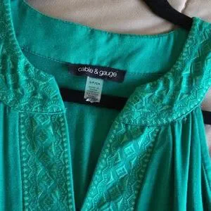 Cable & Gauge Green Embroidered Yoke Tank Top EUC