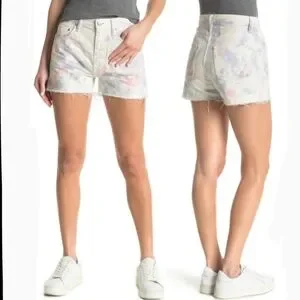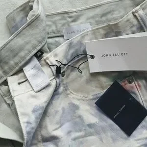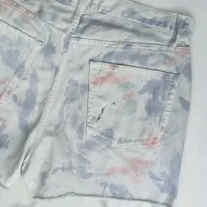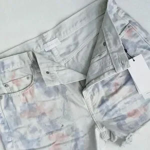 John Elliott Denim Shorts Tie Dye 5-Pocket Fray Hem White Purple Push Pop 29 NWT