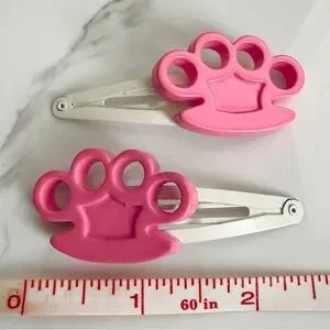 -Pink Plastic Brass Knuckles on White Metal Clips