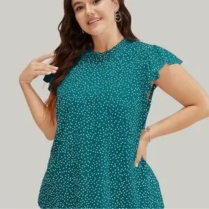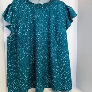 NWT!Teal polkadot mock neck cap sleeve top size 22-24 or3X
