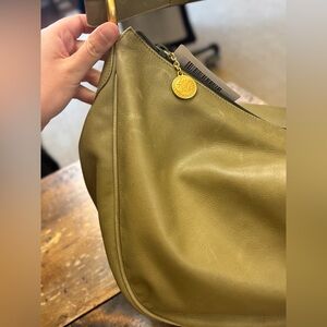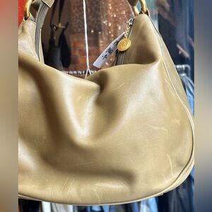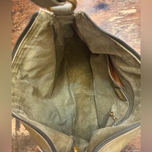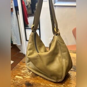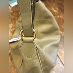 Incredible vintage Gucci leather hobo bag. A pistachio khaki green color. Beautiful condition, has some scratching to outside, please see photos. Gold accents, suede interior.