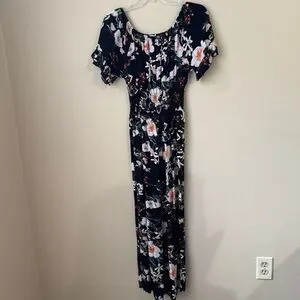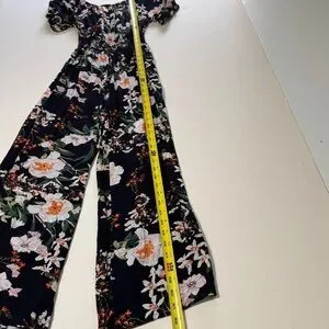 Kindred Anthropologie Womens Jumpsuit Size S Black Floral Wide Leg Casual Travel