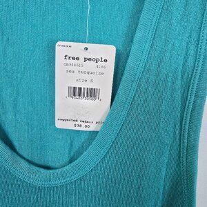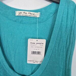 New with tags Free People We The Free sleeveless knit tank top in Sea Turquoise, size small. Soft stretch knit fabric with a relaxed, easy fit and scoop neckline. Great basic layering piece for casual outfits.