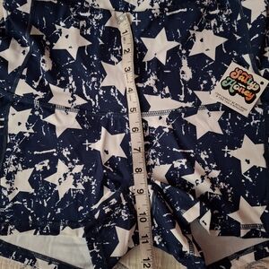 High-performance women’s shorts with a bold navy and white star print. Smooth, stretchy fabric for comfortable movement. Breathable design ideal for workouts or casual wear. Easy-care material retains shape and color. Navy and white styling offers a versatile, modern look.
