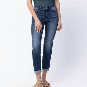 NEW JUDY BLUE basic cuffed slim fit boyfriend jeans in blue