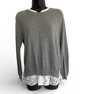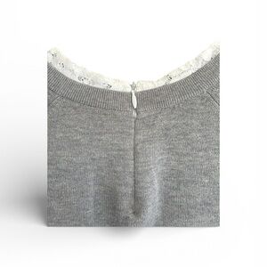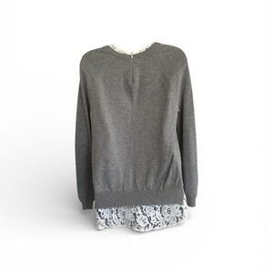 Joie Gray Knit Top with White Lace Trim Size S - Gray