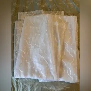 Sheer White Decorative Window Panels with Geometric Embroidery - 2 panels