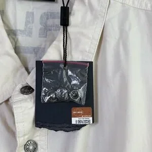 New with tags and extra buttons. A couple small faint marks on the shoulder. They may come out with a wash (I have not washed it since the tags are still attached).