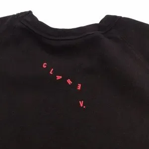 Casual Clare V crewneck sweatshirt. Black base with small pink lip graphic on chest. Long sleeves and ribbed cuffs. Soft, relaxed fit. Easy to style with jeans or leggings.