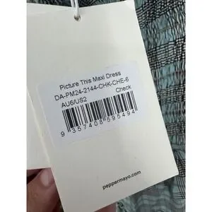NWT Peppermayo Picture This Maxi Dress Women's 2 Gray Blue Check Pattern Party