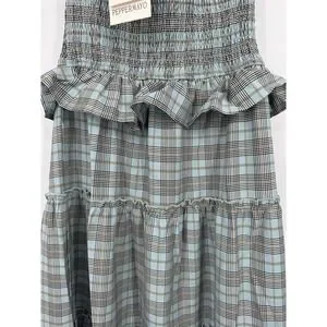 New with Tags – The NWT Peppermayo Picture This Maxi Dress is a stylish and trendy option for a party or cocktail event. This sleeveless, strapless dress features a check pattern in gray and blue, making it a statement piece for your summer wardrobe. Made from 100% polyester, this long dress is perfect for a maternity size 2 woman looking to make a fashion-forward statement. The retro 90s theme adds a fun and unique touch to your outfit, making it a standout choice for any summer occasion..