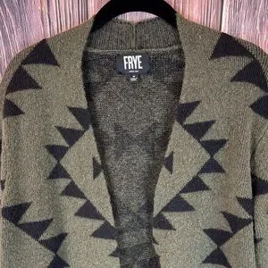 Stylish Frye cardigan with striking patterns. Perfect for any occasion.
