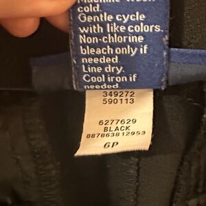 Waist 16 inches has flex waist band, inseam 26.5 inches, rise 10 inches, has stretch.