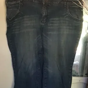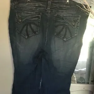 Venezia boot cut jeans in a faded blue wash. Stretch fabric for comfortable wear. Subtle whiskering and gentle fade for casual style. Flattering silhouette with classic five-pocket look.