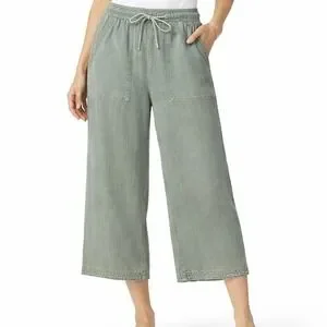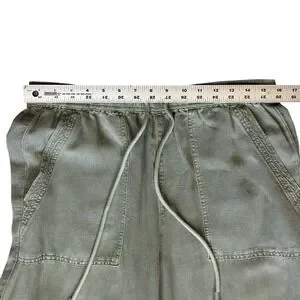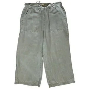JOIE Green Linen Lyocell Wide Leg Crop Pants Drawstring Elastic Waist L Coastal