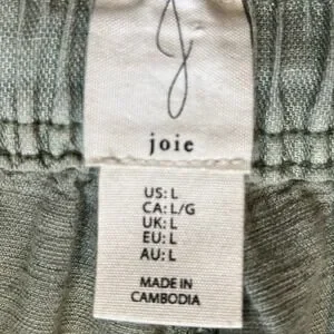 JOIE Coastal Linen Blend Wide Leg Crop Pants Olive Green Drawstring Elastic Waist L